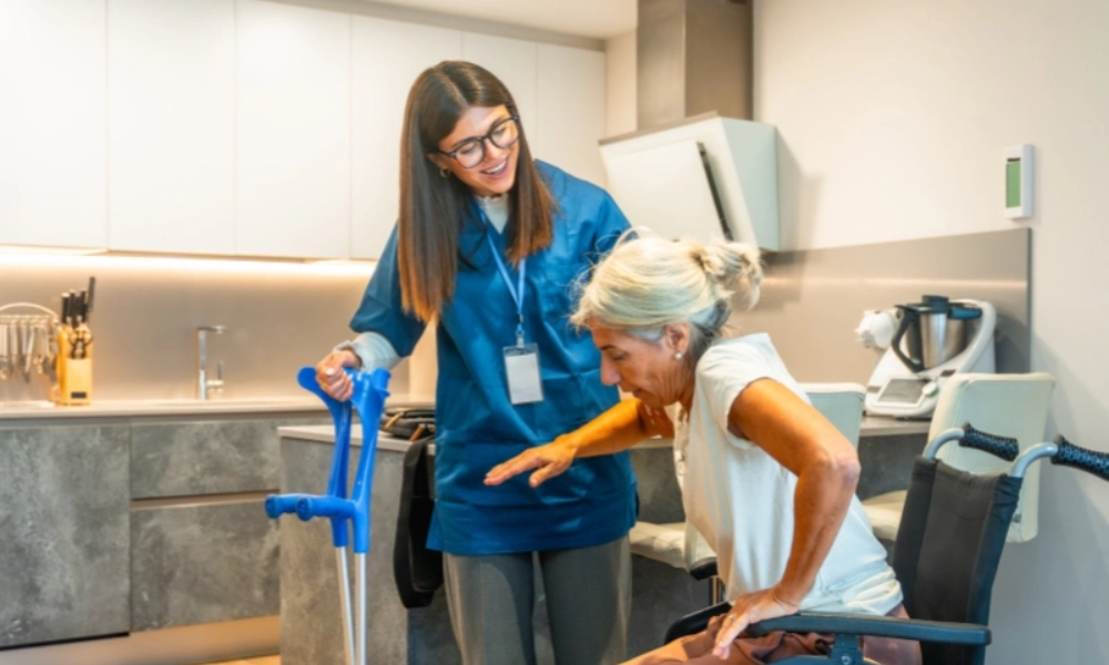 Assistance with walking, standing, and transfers to reduce fall risks and improve safety.